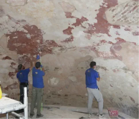 - Συντήρηση δομικών υλικών (λίθων και κονιαμάτων) και του διακόσμου (γραφικός διάκοσμος, ξύλινα στοιχεία, τέμπλο κ.λπ.).